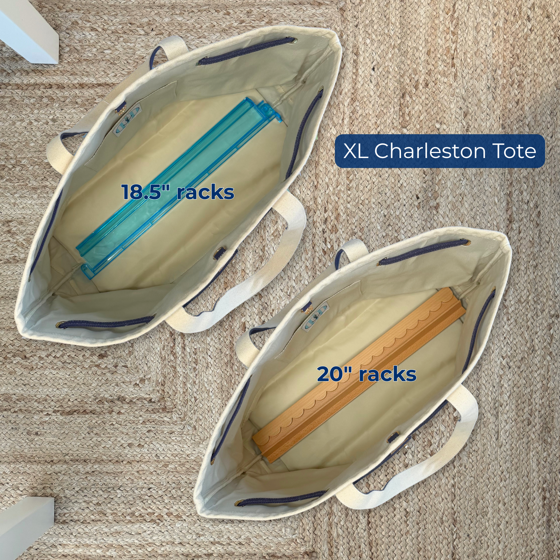 The tote that really carries it all.The Charleston XL Carryall Tote combines timeless coastal style with maximum function. Generously sized and fully lined, it’s designed to handle whatever your day crafted from reinforced canvas for strength and durability. This is the bag you want if you travel with your 20" mahjong racks.